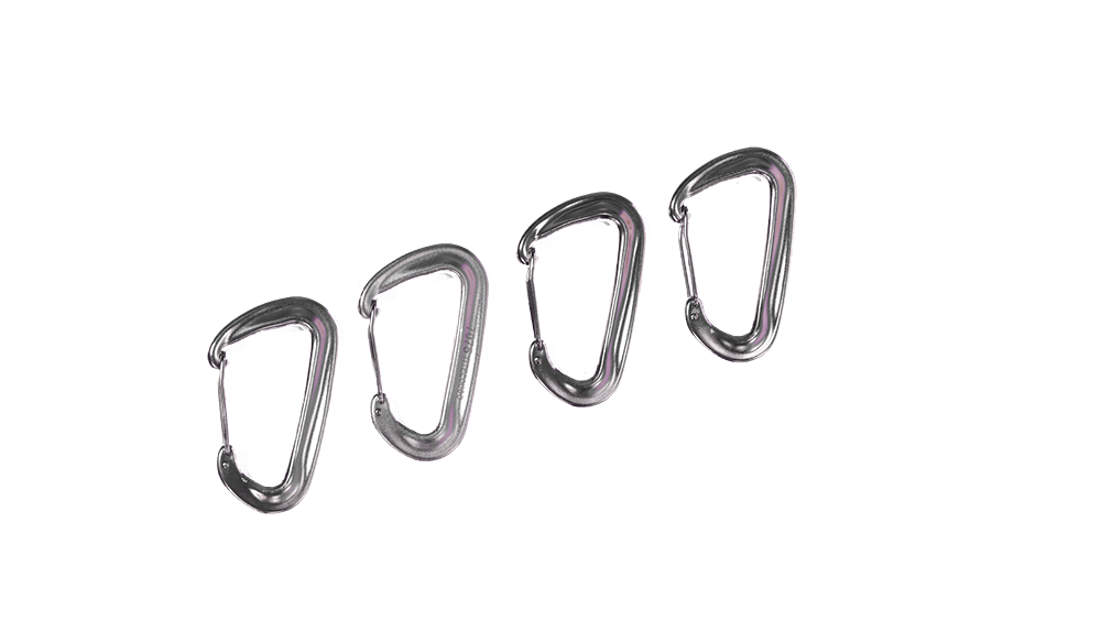 4 carabiners each is a metal loop with a spring-loaded gate used to quickly and reversibly connect accessory components.