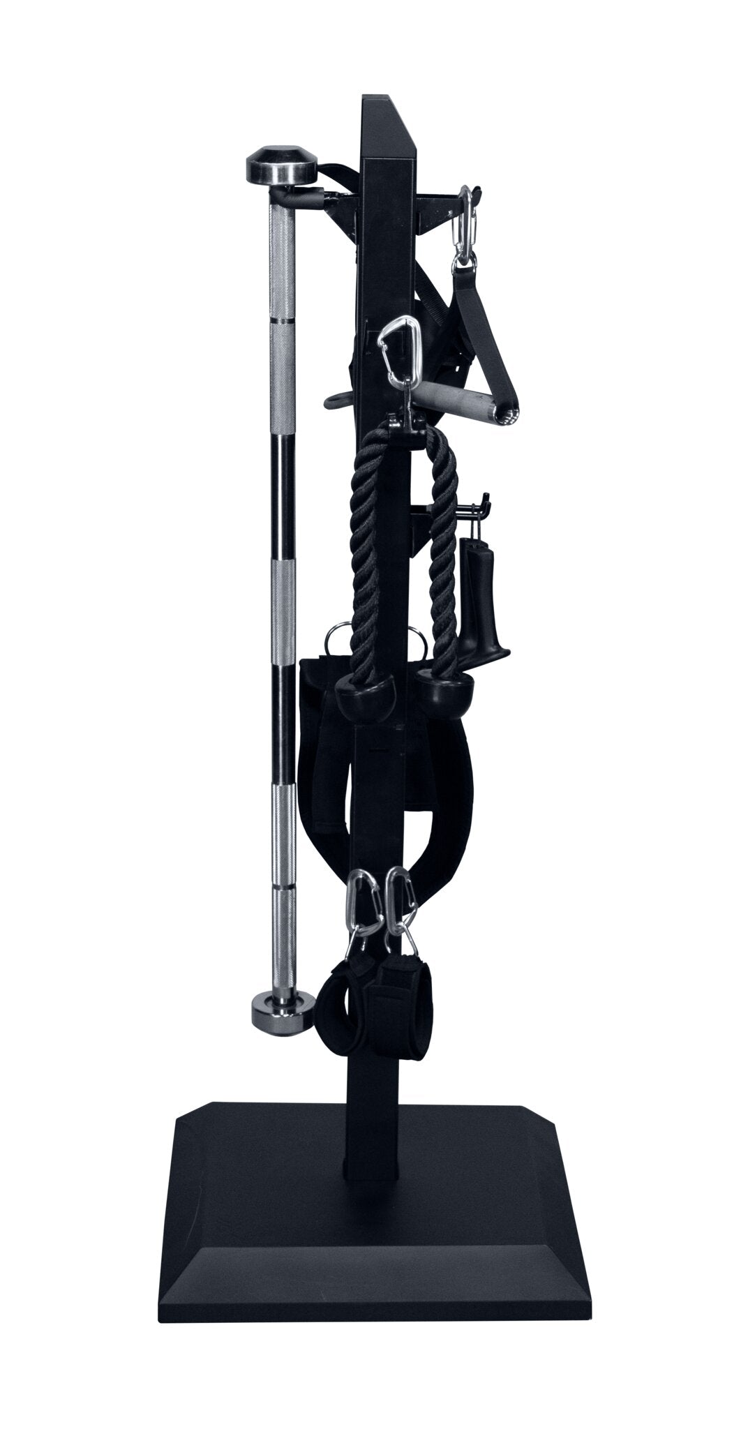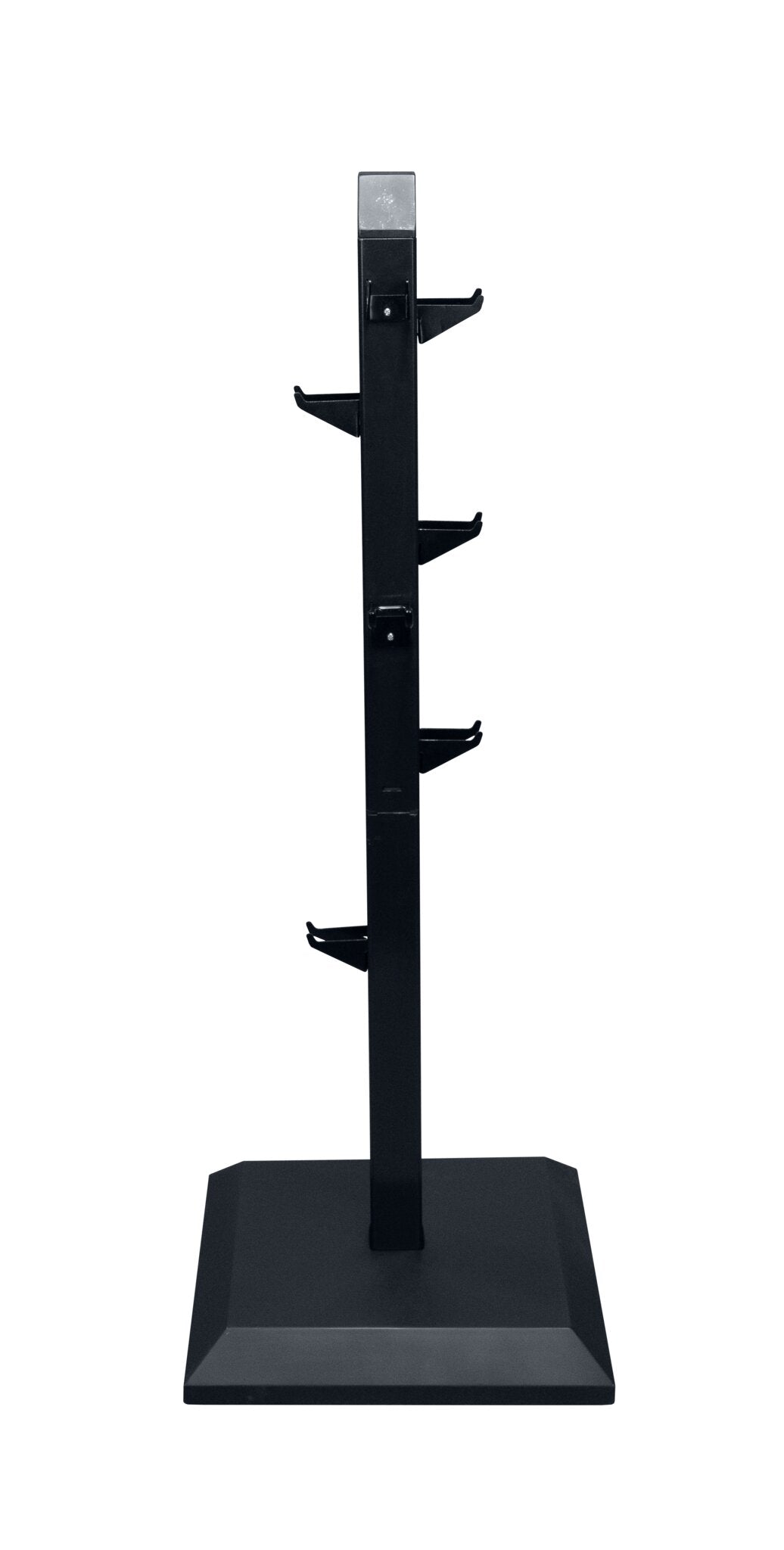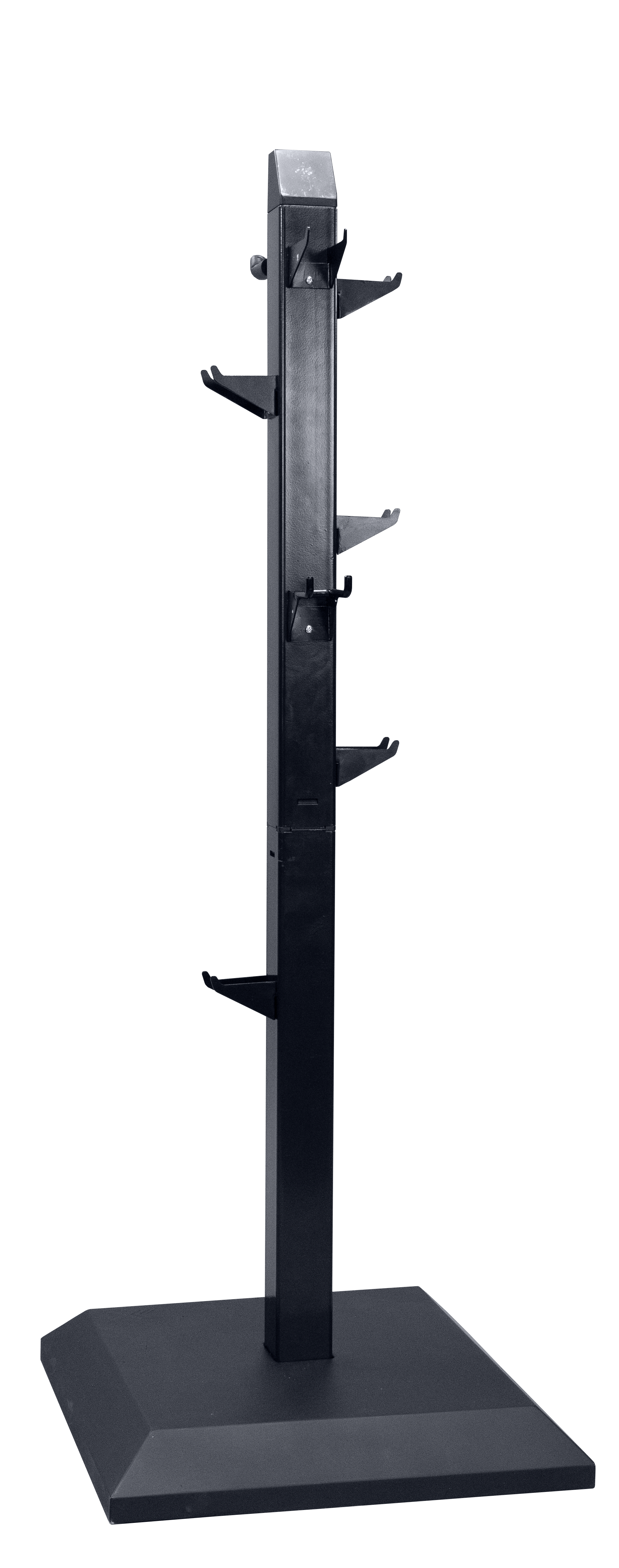 The XS1 Accessory Tree will hold all of your XS1 accessories. The Tree has two bar hooks, one for the barbell and one for the multifunction bar. There are six accessory hooks that will store the rest of the accessories.